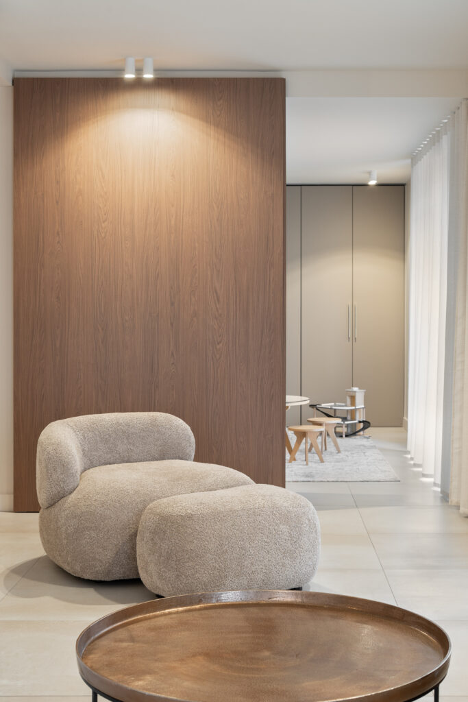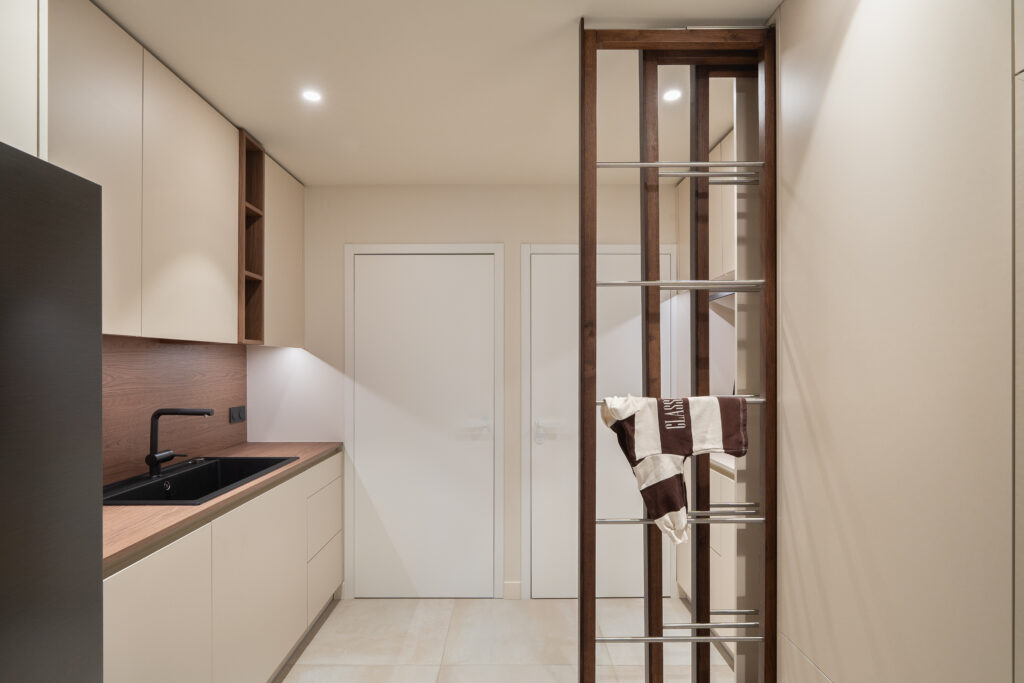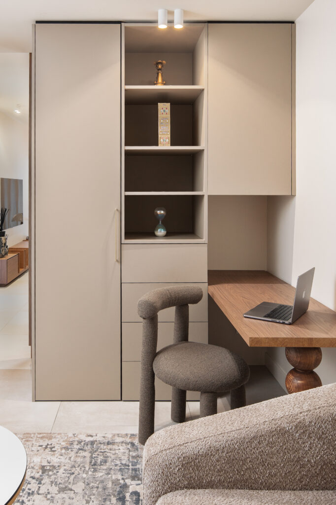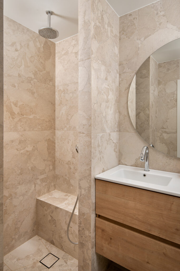 Projet Vita_ . Rénovation complète de deux appartements pour créer un duplex..Surfaces : Bien d'origine: 90 m2 Appartement R+1: 54m2 Extension: 8m2 Total projet 152 m2.Mission complète